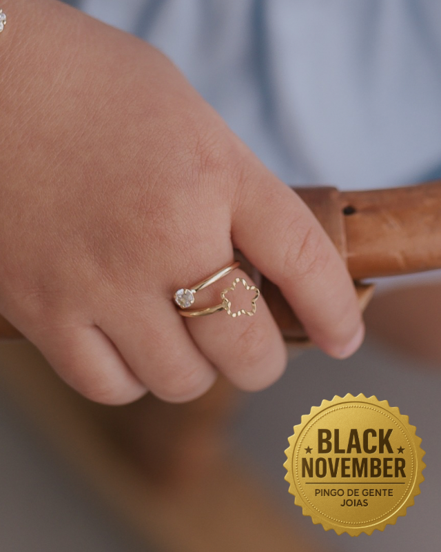 Um toque floral com zircônia cristal que traz elegância, ternura e muito brilho. O Anel Baby Olga é puro encanto para acompanhar os primeiros sorrisos e gestos da infância.