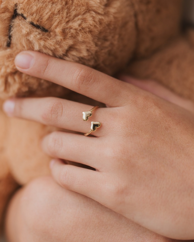 Especialmente criado para a princesinha a partir de 3 anos, o Anel Helena traz dois corações interligados com design regulável, perfeito para acompanhar o crescimento dela com delicadeza e significado.