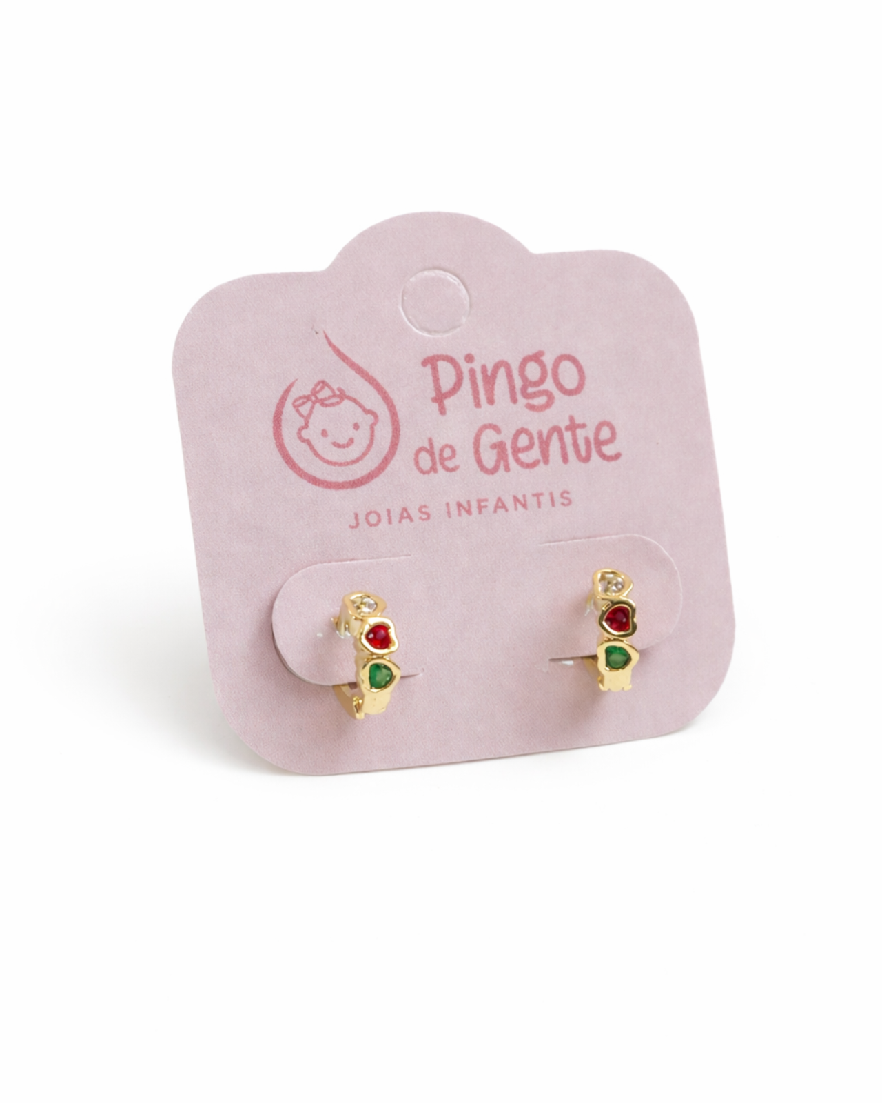 Seu desiginer traz três corações com zircônias cravejadas coloridas - cristal, rosa e verde - que criam um charme único e encantador, dando um ar de joia fina em tamanho mini. Uma peça que combina com qualquer look e fica simplismente apaixonante em fotos especiais, aniversários, batizados e momentos inesquecíveis.