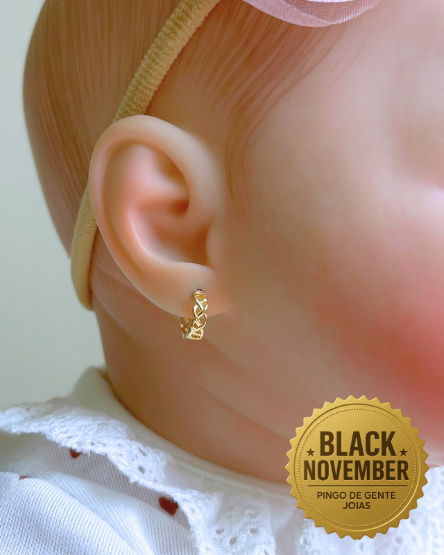 O Brilho Delicado do Amor e Cuidado. Argola baby de click e fios entrelaçados.