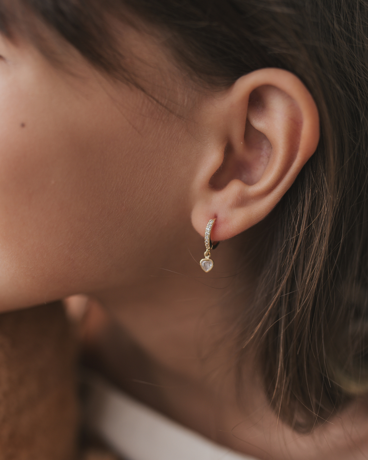 A argola infantil com pingente de coração cravejado foi pensada para acompanhar momentos especiais da infância com muito conforto e encanto.