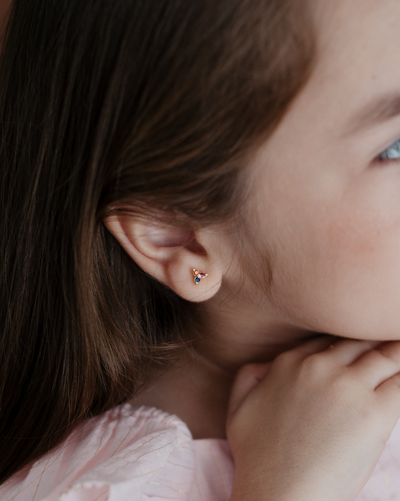 Delicado e sofisticado, o brinco Angelina é um brinco de cachinho com 3 zircônias cravejadas coloridas e é perfeito para trazer brilho na medida certa ao visual infantil. Com apenas 0,5cm, ele e é leve, confortável e ideal para crianças a partir de 3 meses, garantindo charme e segurança.