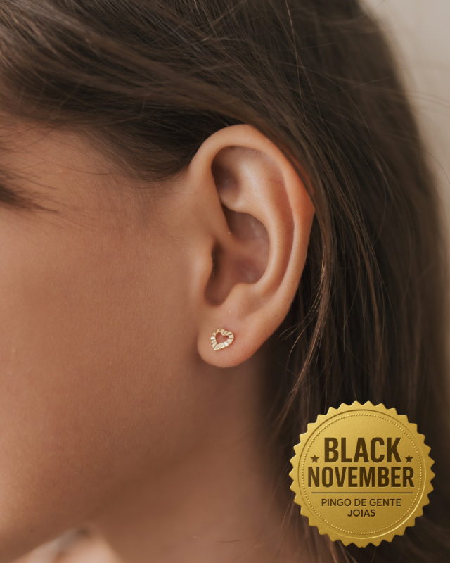 Brinco coração frisado e vazado.