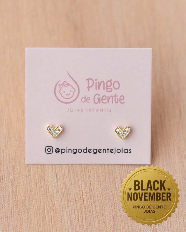 Brinco de coração com micro zircônias cravejadas no cristal. Acompanha tarraxa baby (de proteção) e a borboleta!