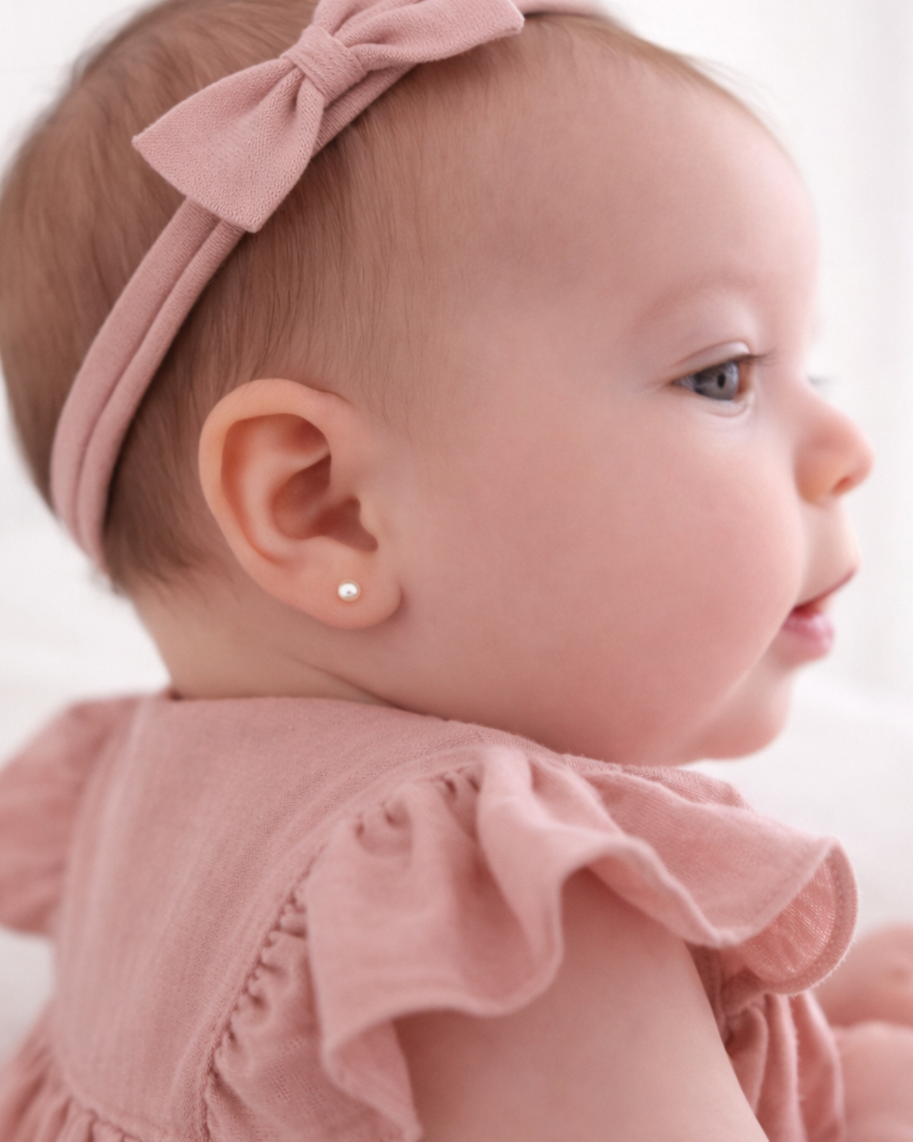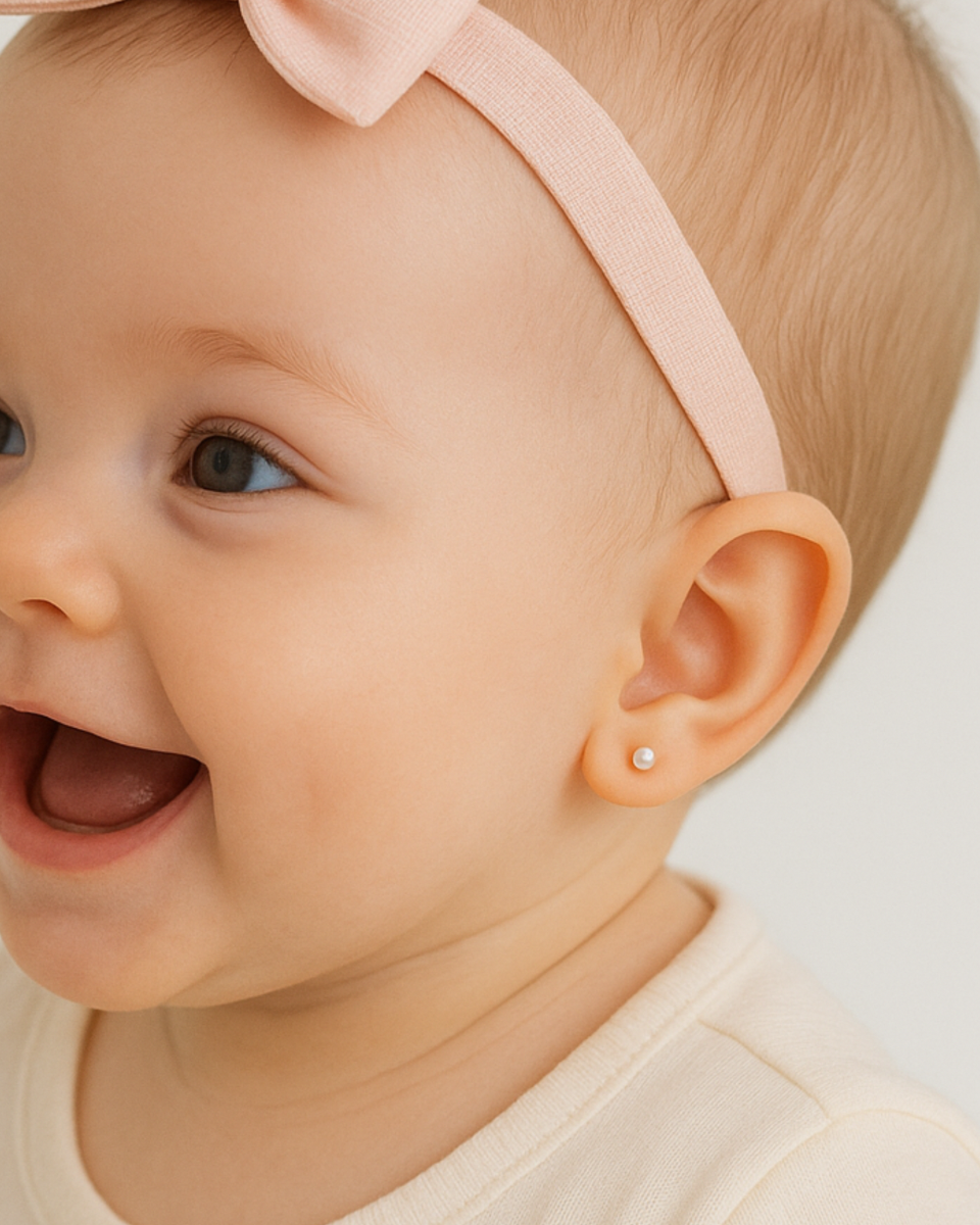 A Primeira Joia que abraça sua Princesa. Brinco de pérola de 3 mm, acompanha tarraxa baby e borboleta.