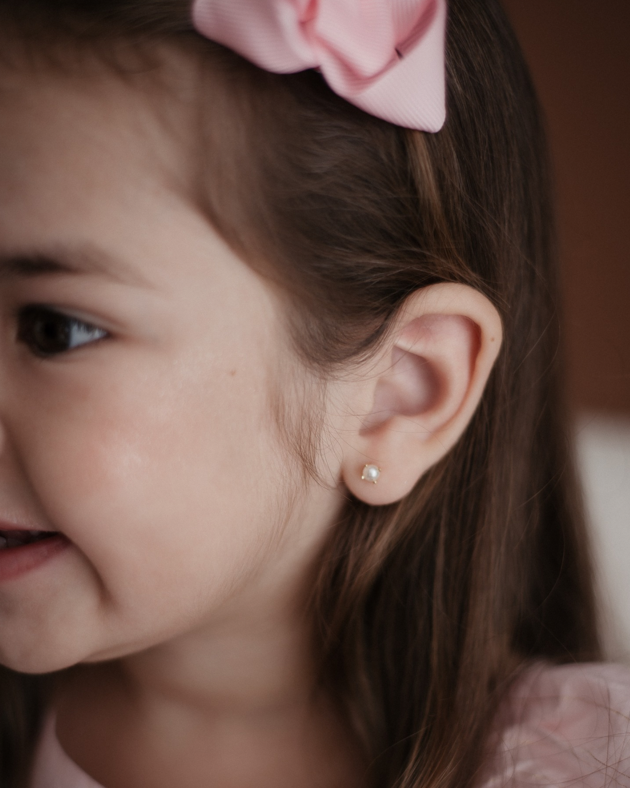 O Brinco Infantil de Pérola 4mm com 4 garras, banhado a ouro 18K, é a escolha perfeita para quem busca delicadeza, segurança e elegância atemporal para crianças a partir de 1 ano. Um clássico que atravessa gerações, pensado especialmente para o conforto e o bem-estar das pequenas.