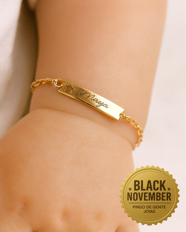 A Pulseira Infantil Estrela Personalizada da Pingo de Gente Joias foi criada para representar o brilho e a luz que seu bebê traz ao mundo.